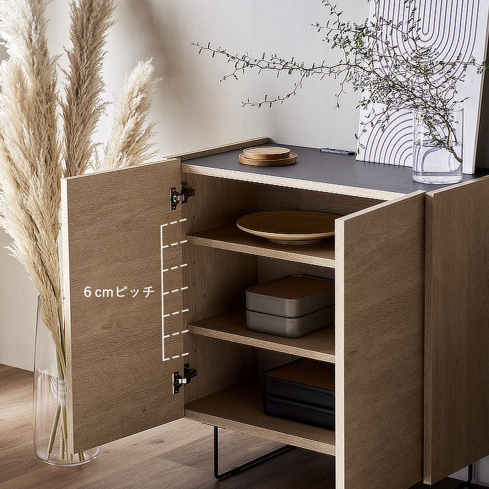 棚板は取り外し自由で7段階での調節が可能(6cmピッチ)。