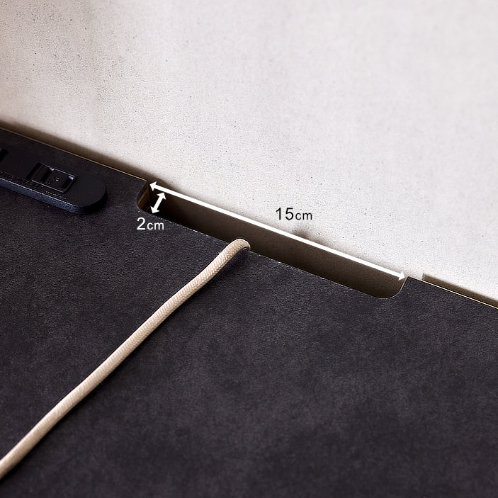 天板中央後方に配線用の加工を施しており、壁にぴったり付けた状態で使用できます。