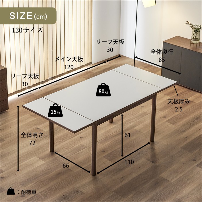【オンライン限定】AT 120 伸長式 伸縮 ダイニングテーブル (WN)