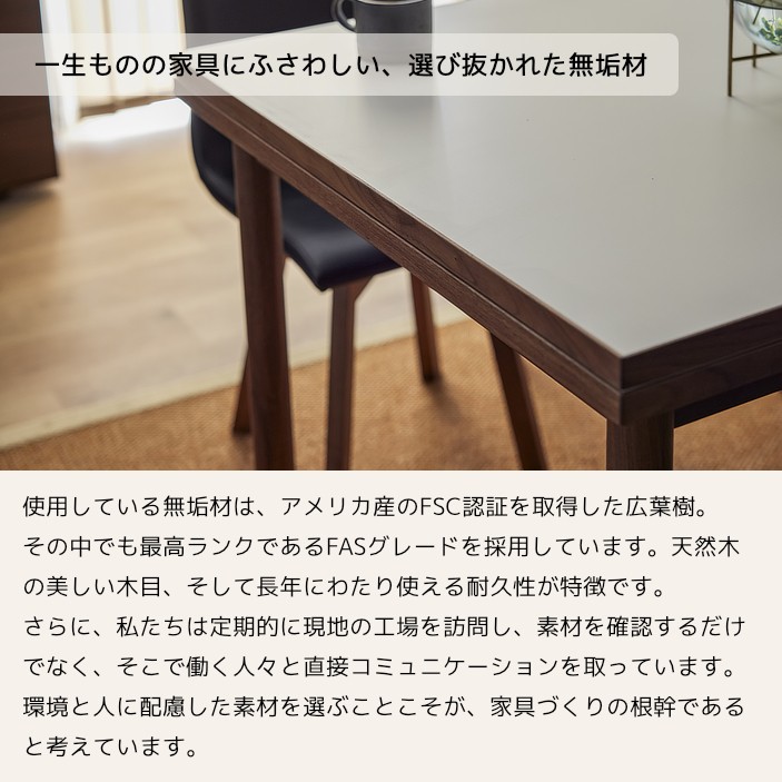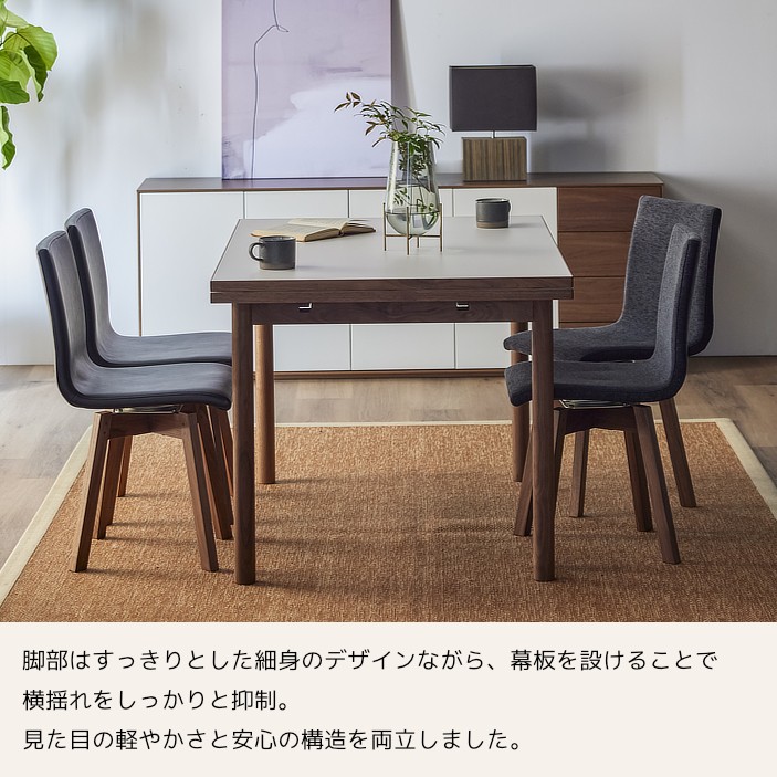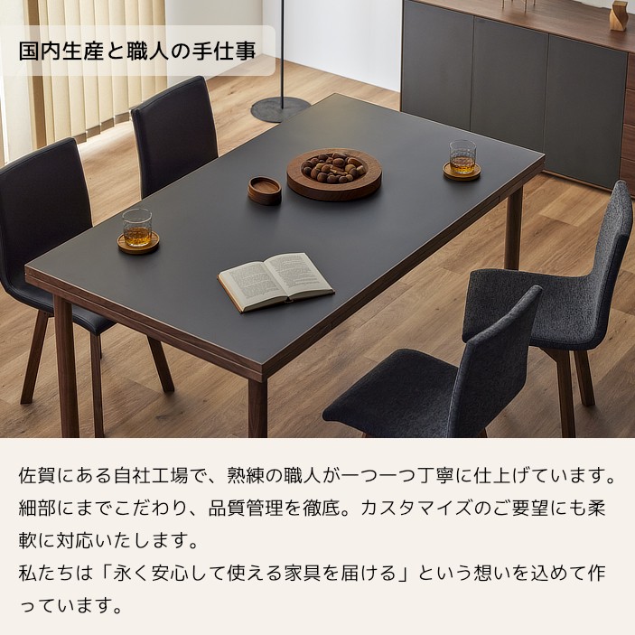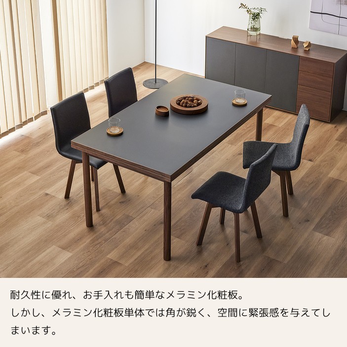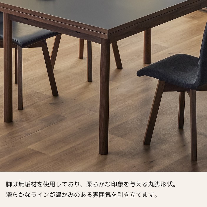 天板縁や脚、幕板にはウォールナットの無垢材をあしらい、上品な木の風合いをプラスしています。